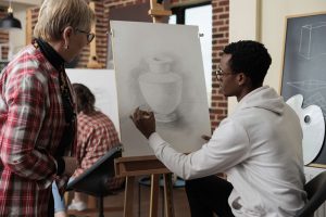 A lot of mistakes happen when we begin to shade. We often push too hard on the pencil or apply too many strokes as we try to create contrast in our drawing. This usually results in a flat image that’s hard to correct. In an academically painted drawing or painting, you never really see pure blacks. Even the darkest shadows will always show some gradation. Instead of trying to force contrast early on, try to build your tones gradually. Apply lighter strokes and gradually build the tones deeper as you compare them to the lightest light on the object. If your drawing begins to look too dark, stop and try to lighten a few areas with an eraser to push the drawing back into balance.